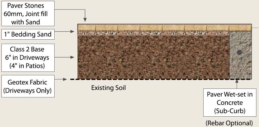 Optional previous membranes or geo-textile fabric may be used to separate the sub-base from the native soil.